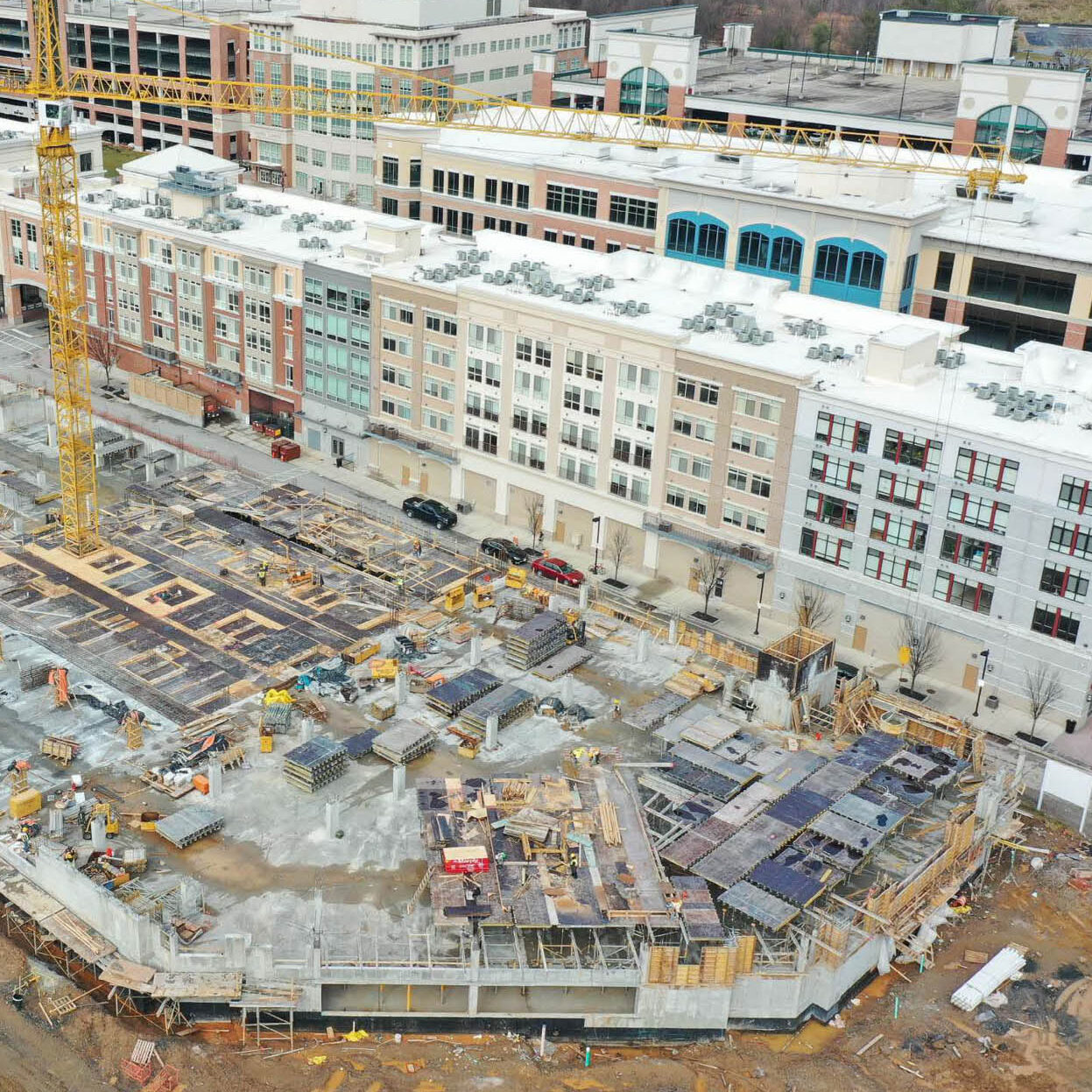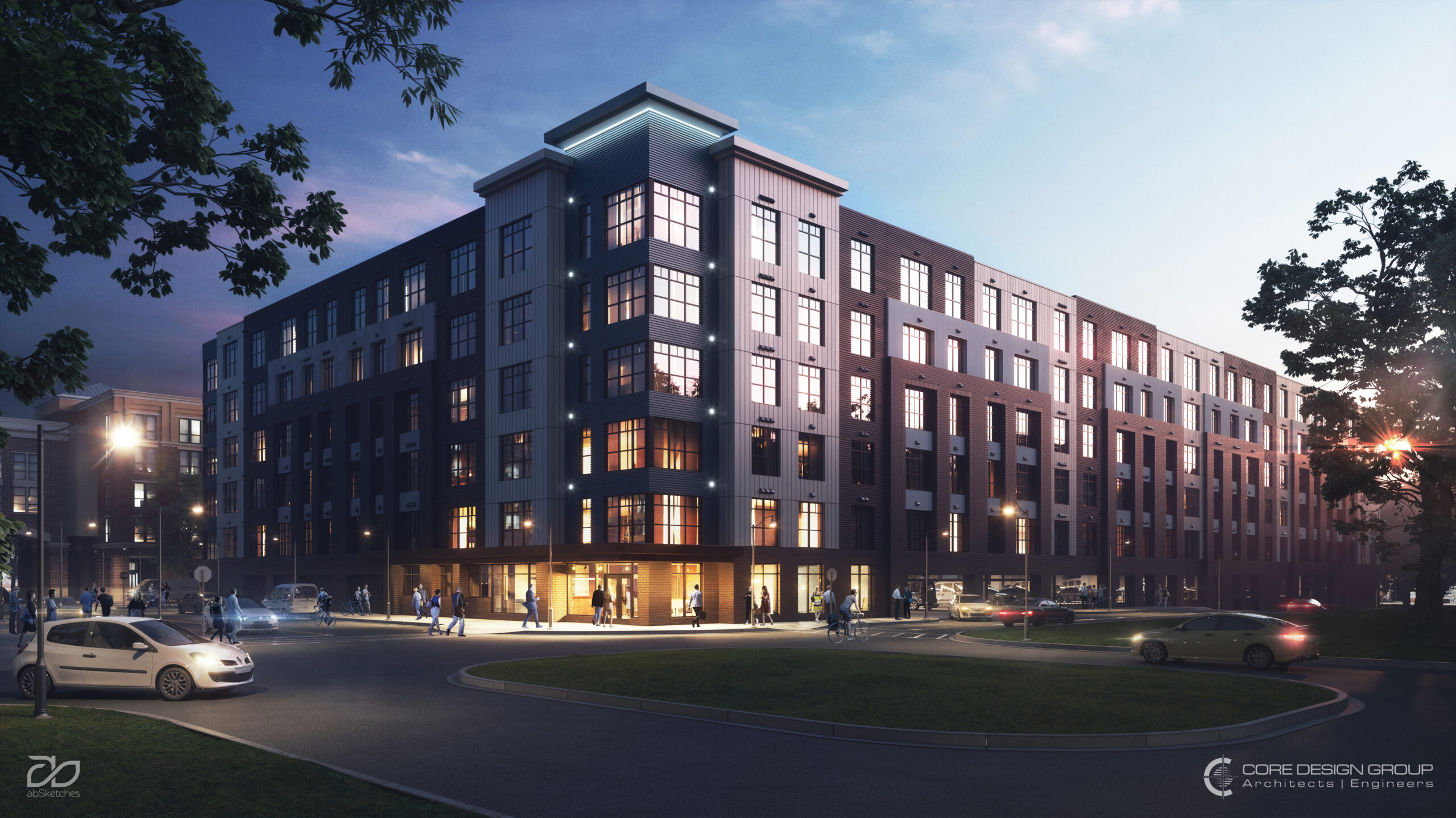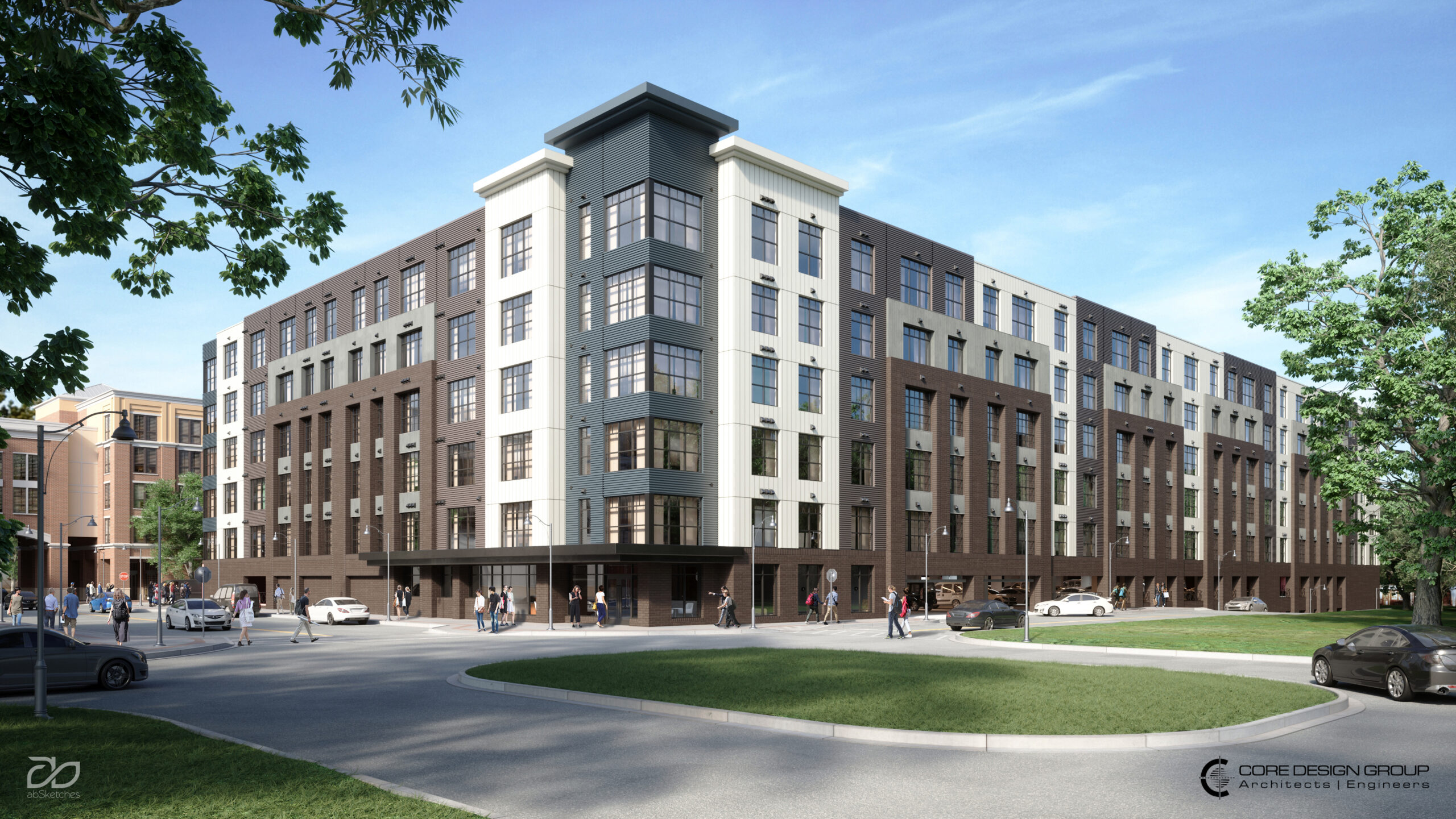 York-based architectural design firm, CORE Design Group, is in the process of designing a new 412,000 square foot apartment complex in Owings Mills, Maryland. The complex will be built with podium style construction featuring 5 stories of wood-framed apartments over 2 stories of cast-in-place concrete parking garage.