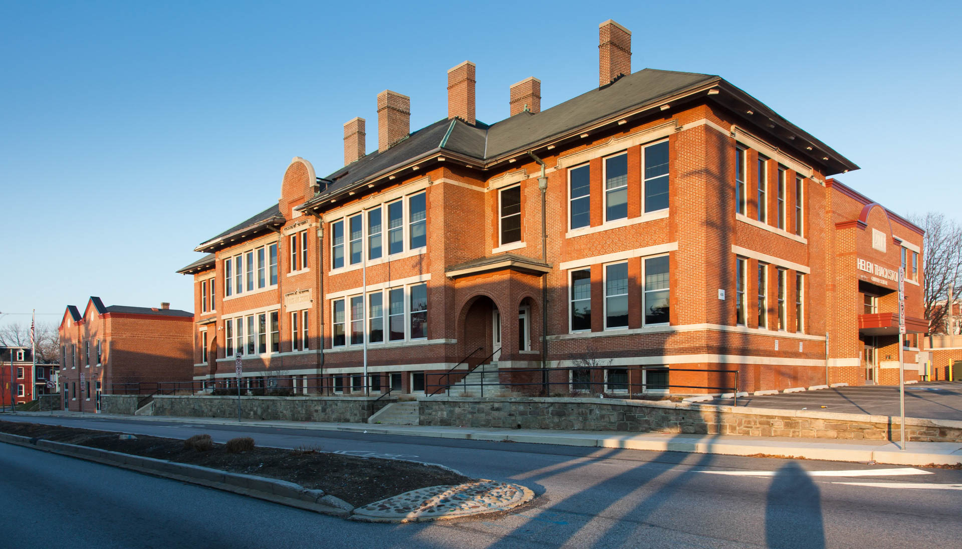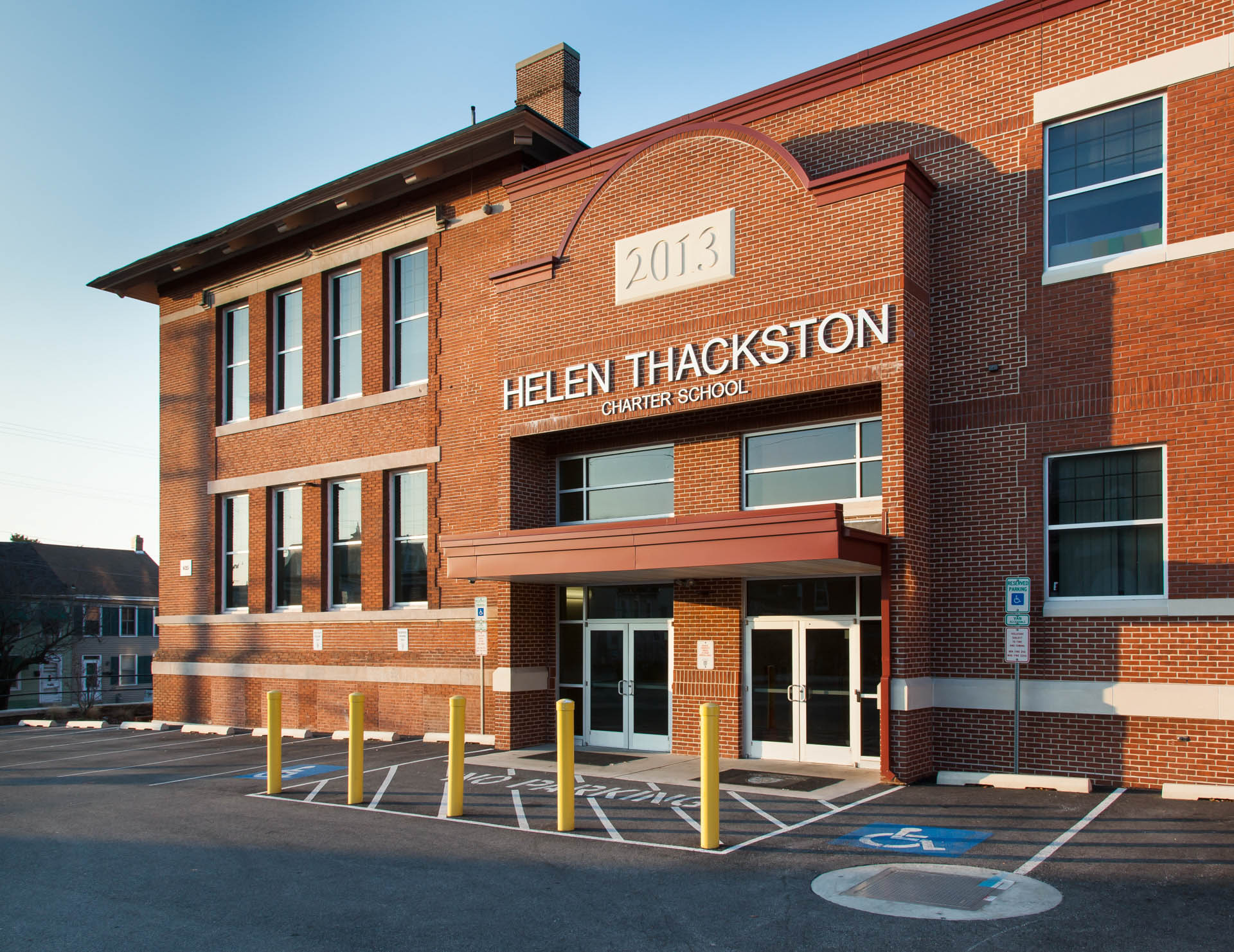 The entire building has been fully sprinklered as well. The addition is three stories of classrooms with a multi-purpose room and commercial kitchen.