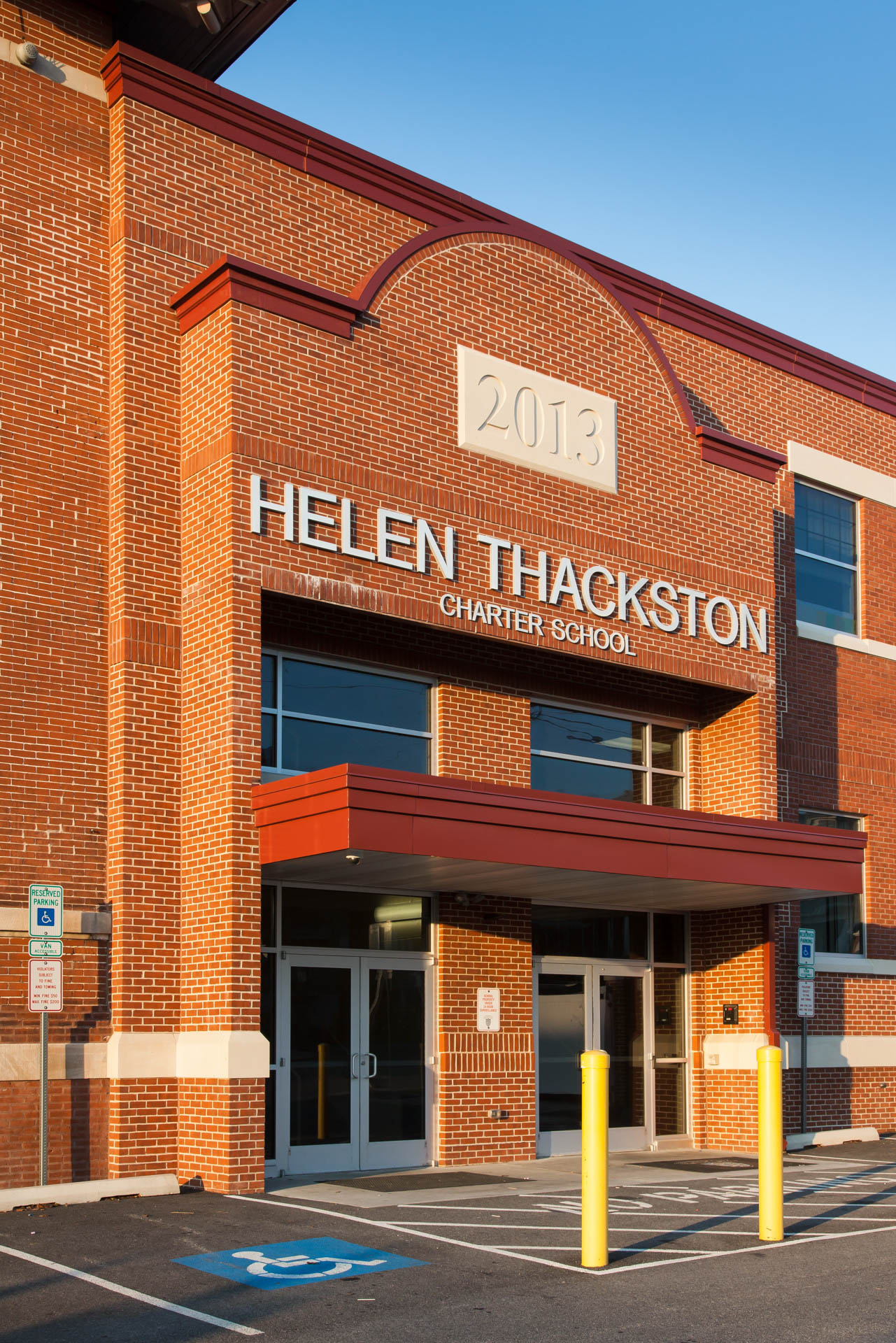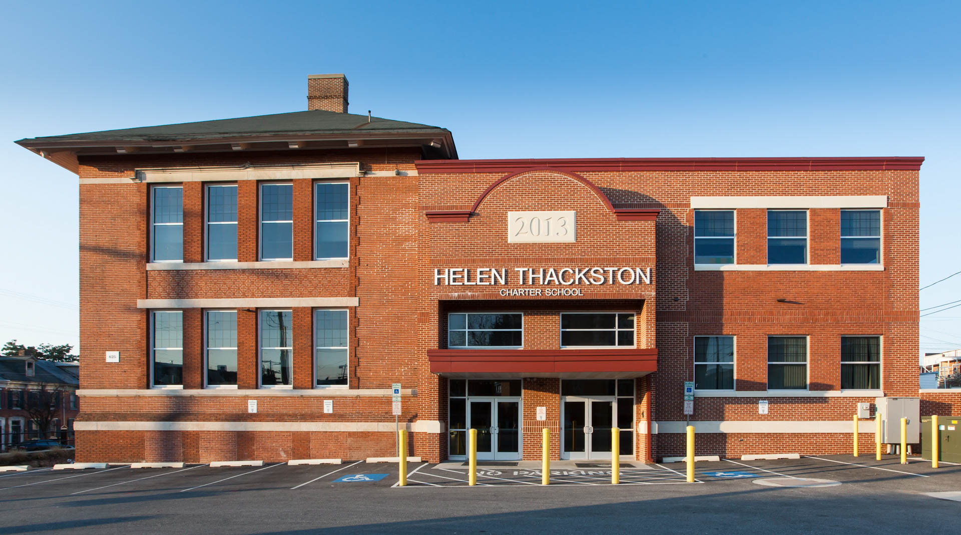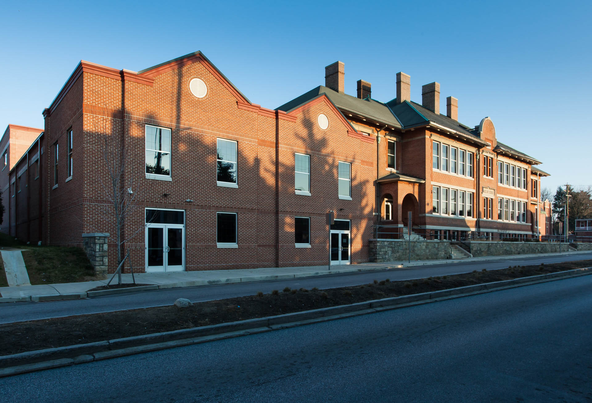 The addition to this facility is a load-bearing masonry cavity wall and steel structure. The exterior finish is a brick masonry and split face CMU with EPDM roof system.