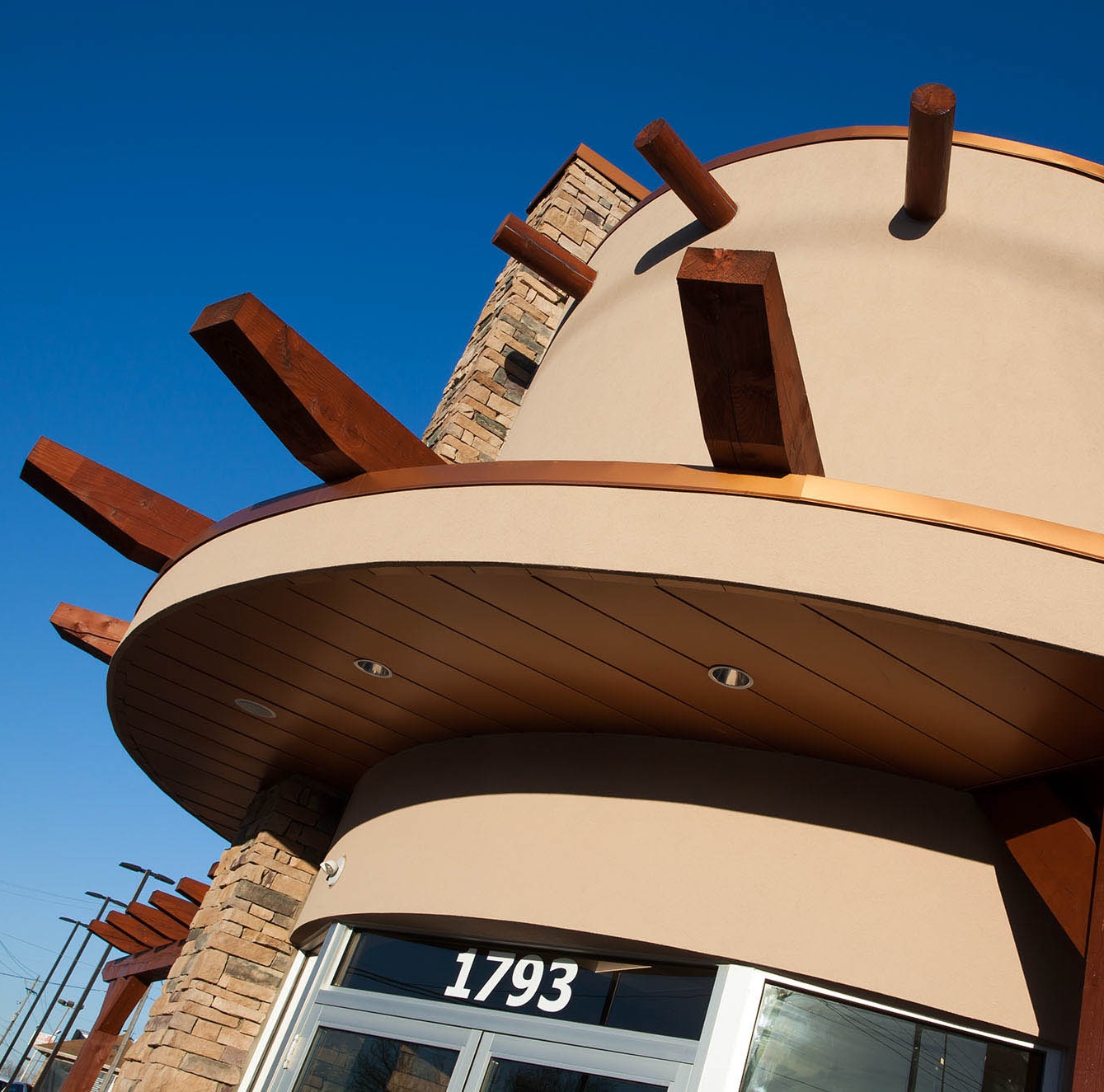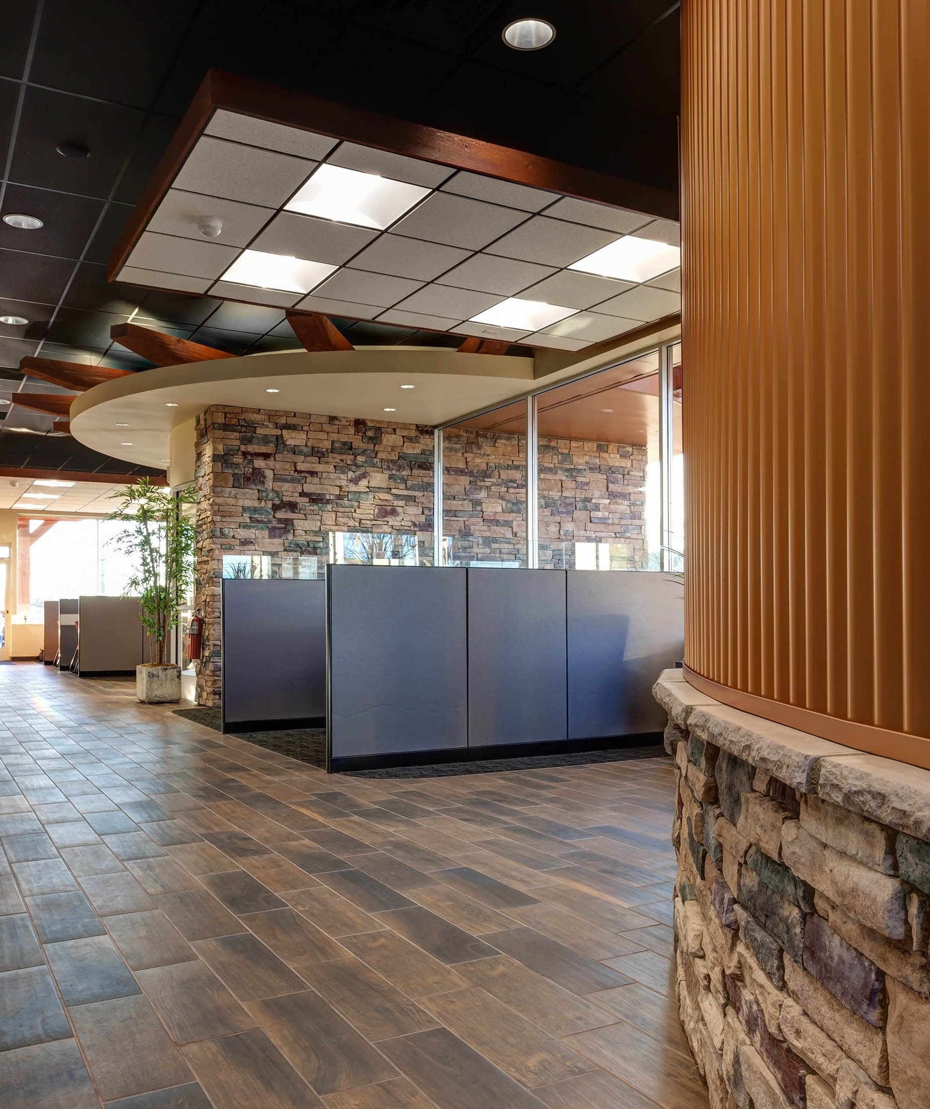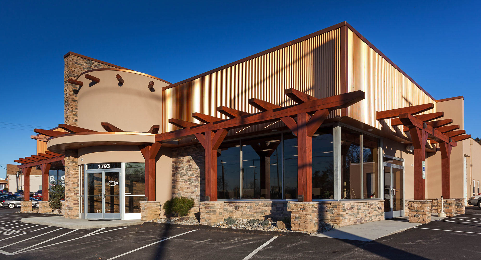 At our client’s behest, the dealership took on a southwest feel with stone accents, wood pergolas, and warm tones. The design was carried through to the interior through materials and design details. Working within the existing show room footprint, the design included offices, open work space, a customer lounge, new ADA-compliant restrooms, and a training room.