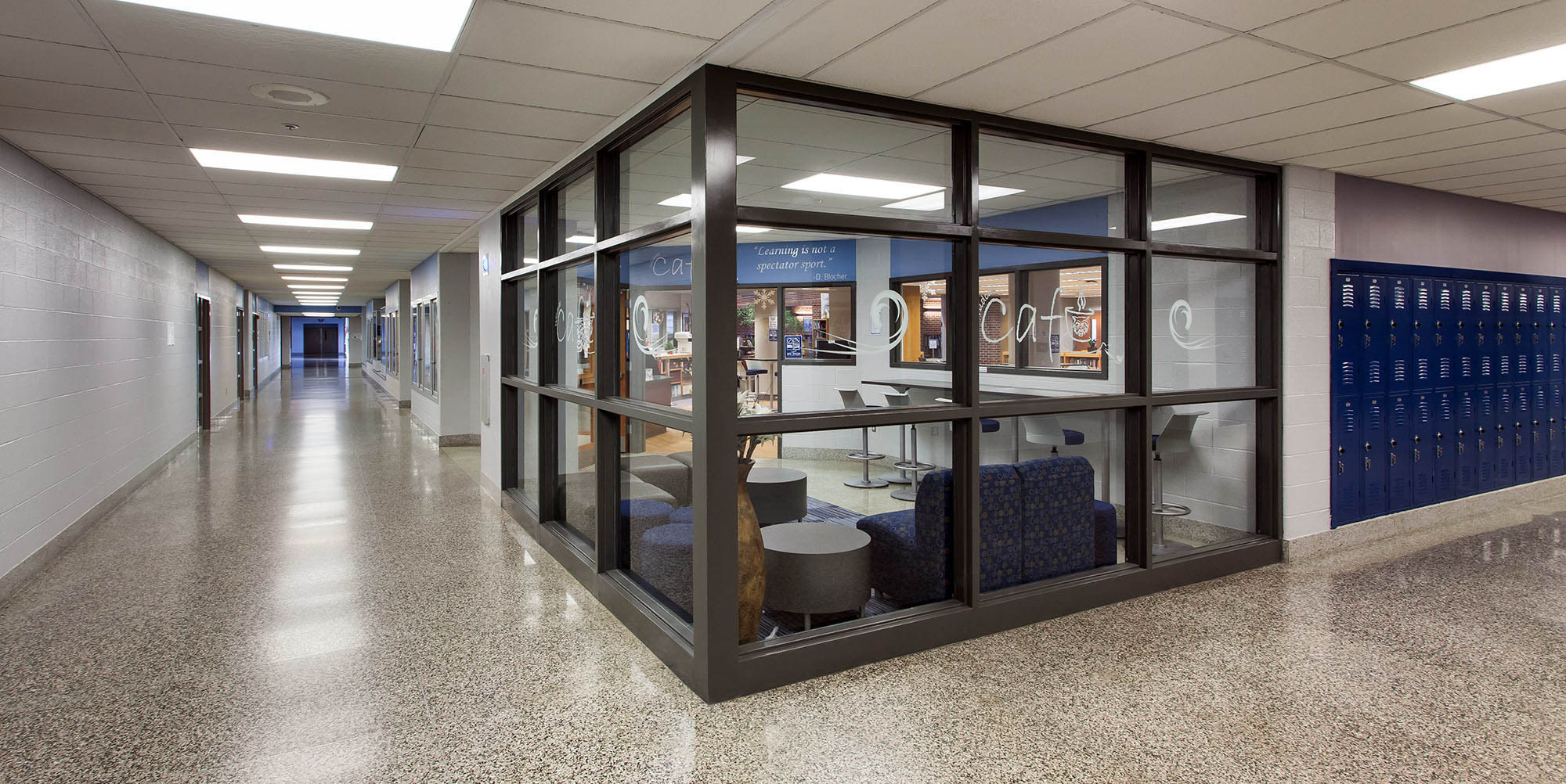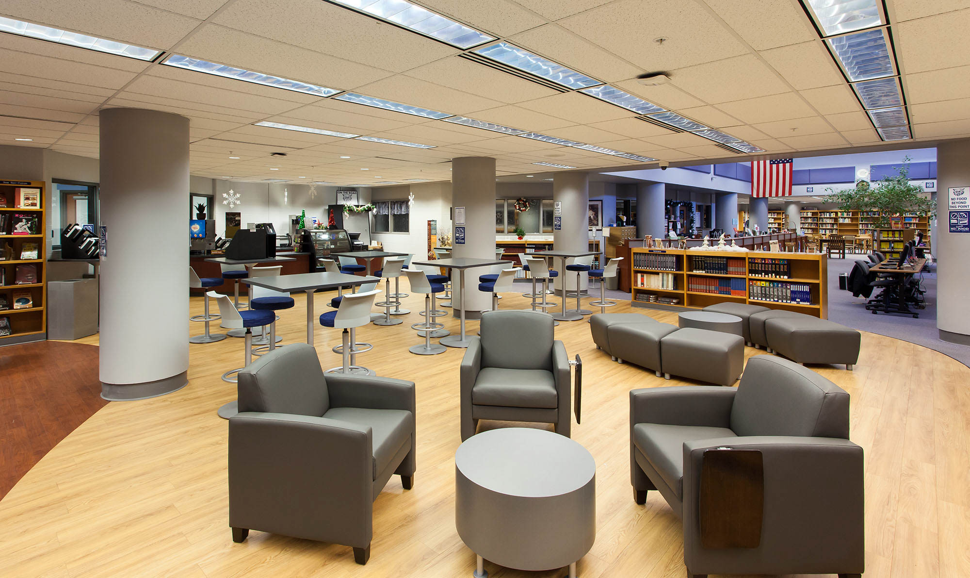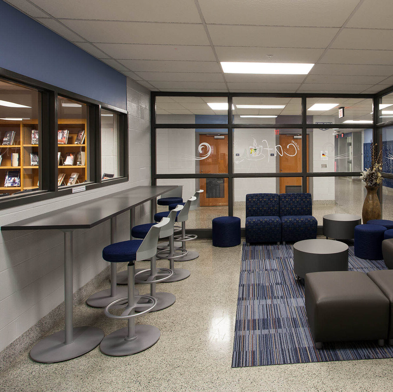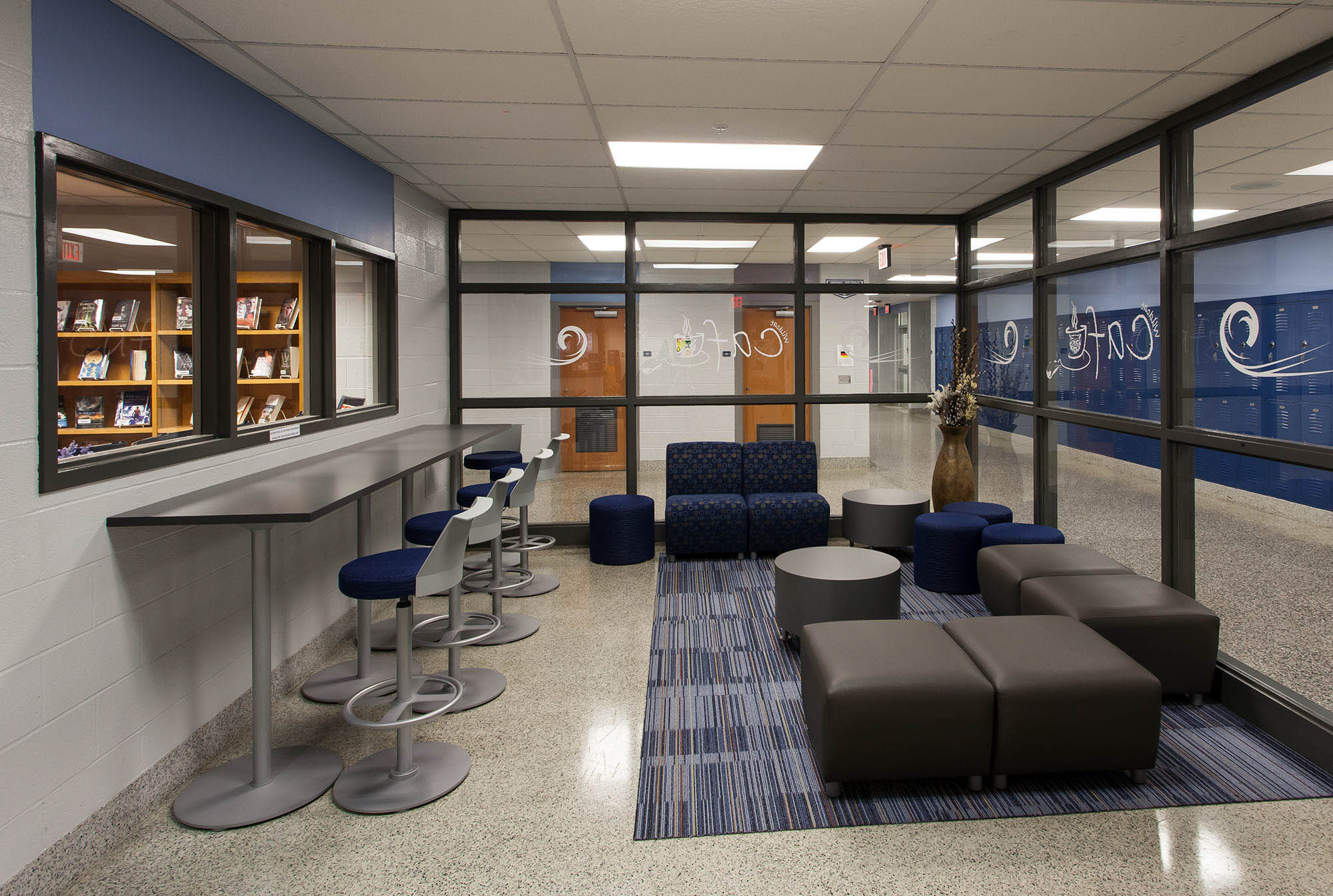 This project included renovations to the existing Dallastown High School library. The renovations also included the addition of a coffee bar and lounge area.