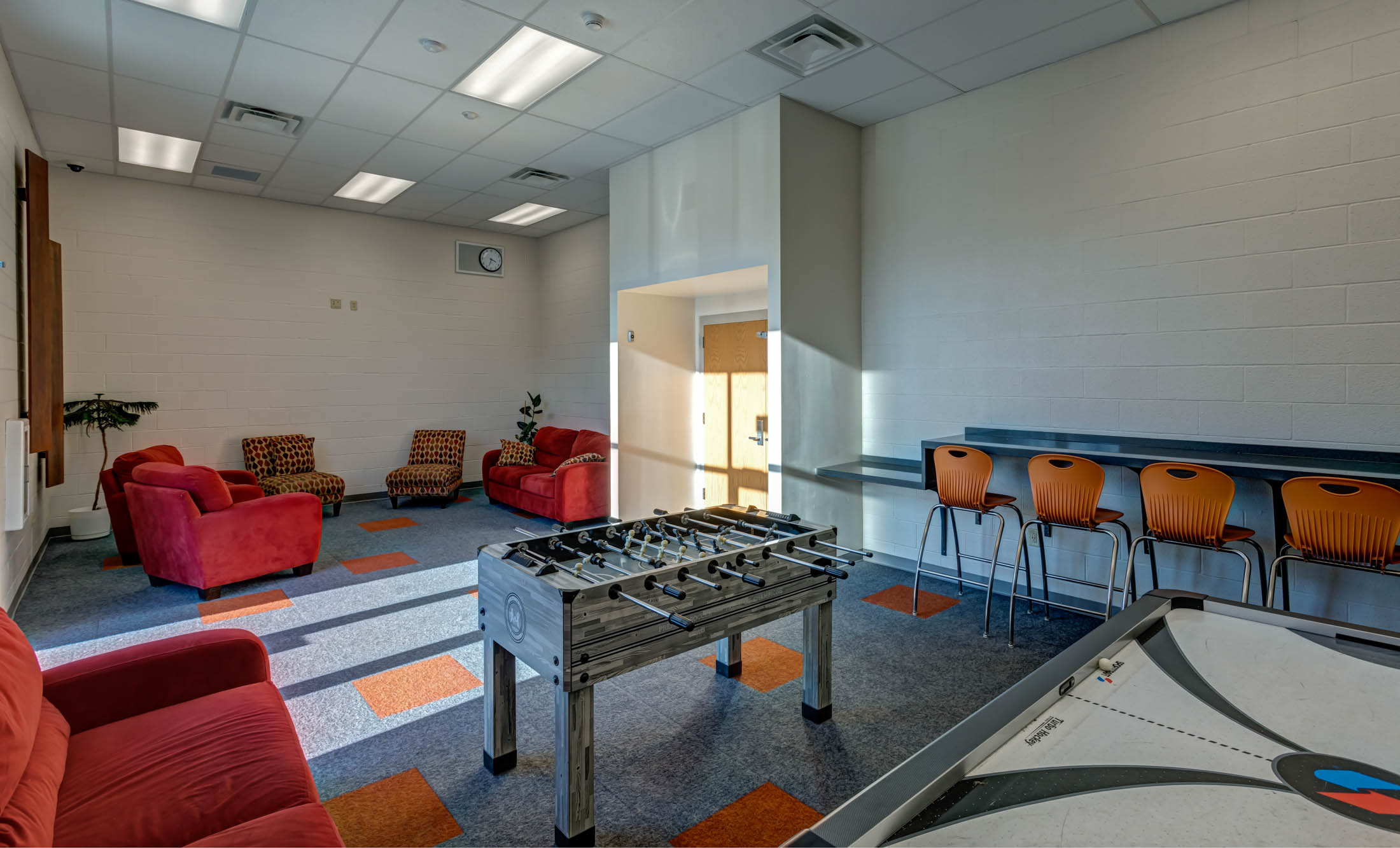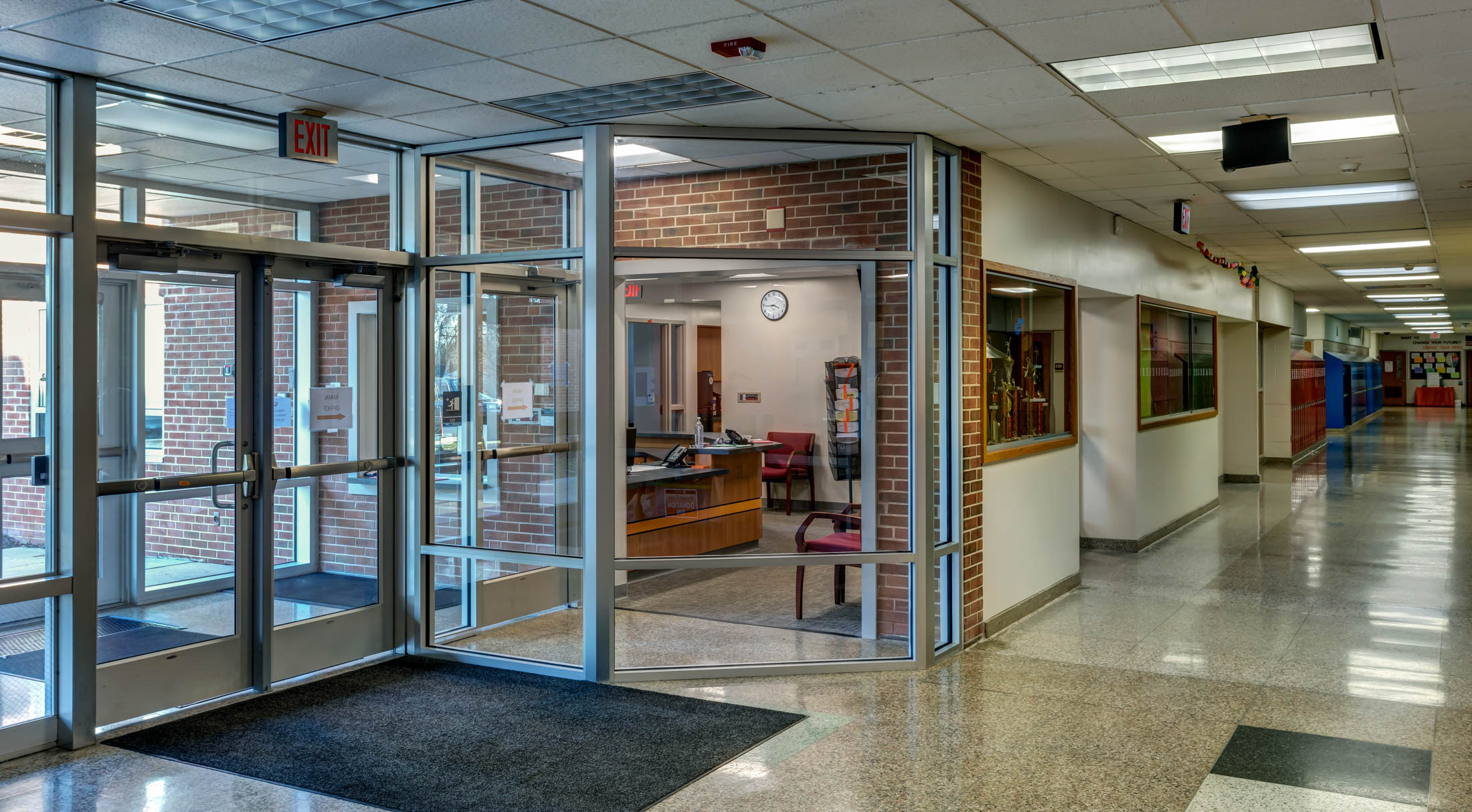 A small lounge addition was added adjacent to the cafeteria. In addition to the cafeteria the District wanted to address security concerns for the Middle School. CORE provided a design that rearranged the Main Office, Guidance, and two classrooms. The new design created a new secure vestibule that allowed for direct access to the Main office.