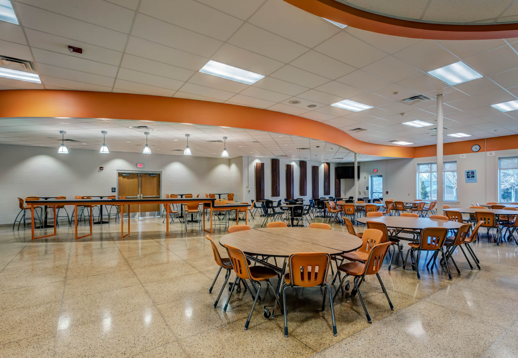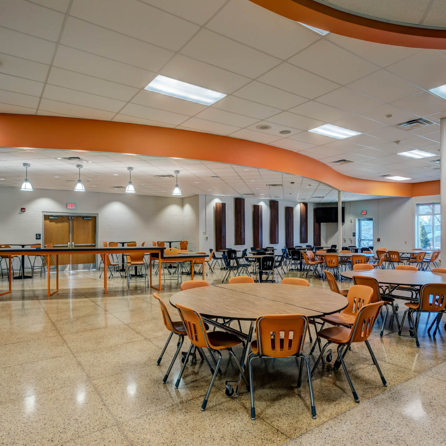 The York Suburban Middle School had an outdated and inefficient layout for its cafeteria and kitchen. The existing cafeteria was broken up into two separate dining areas with the kitchen in the middle. The two dining areas was not sufficient for the amount of students, so an adjacent space was being underutilized as a lounge / expanded dining area.