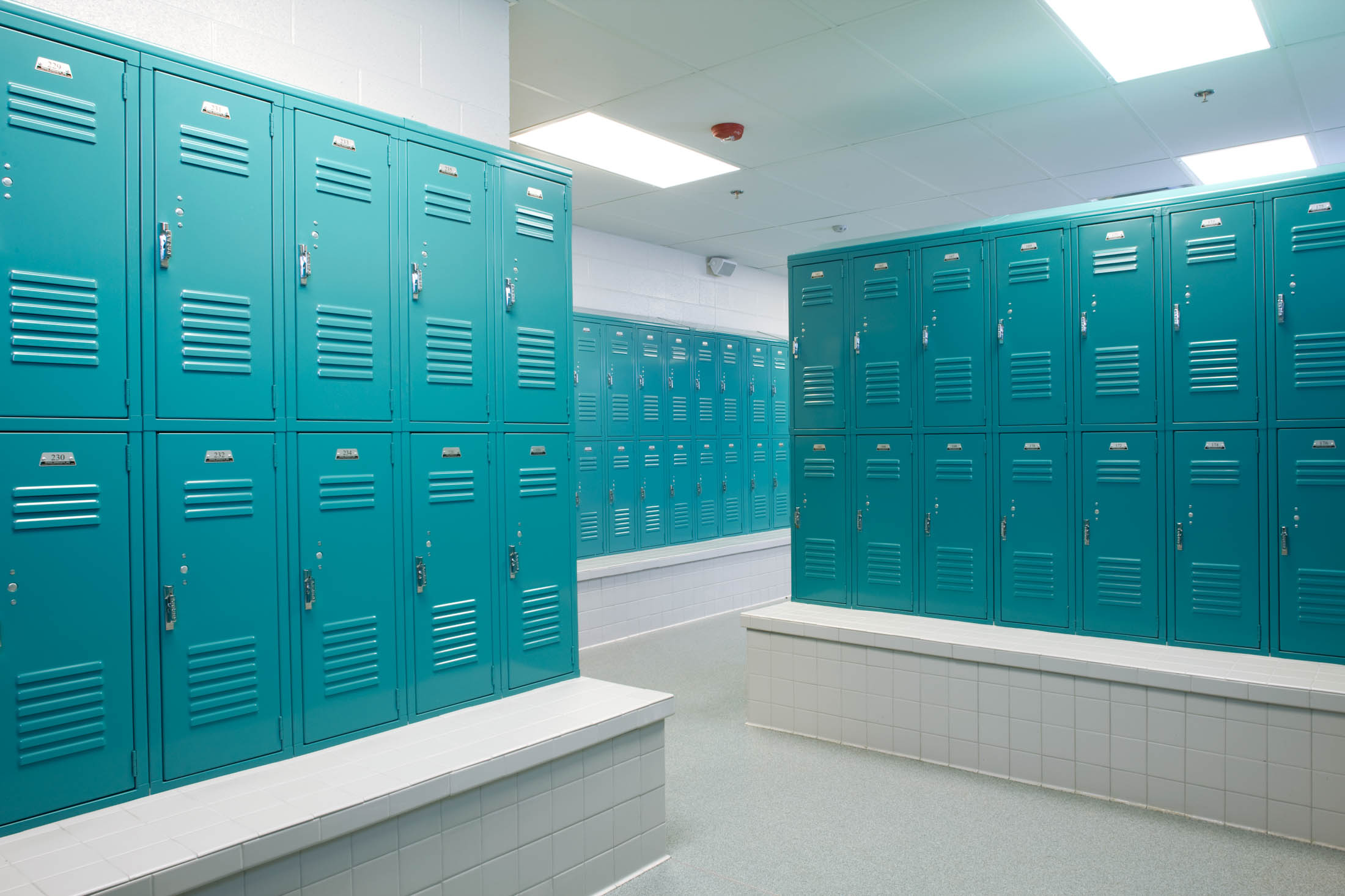 Some exterior finishes feature painted concrete and metal siding. The entire building is sprinklered.